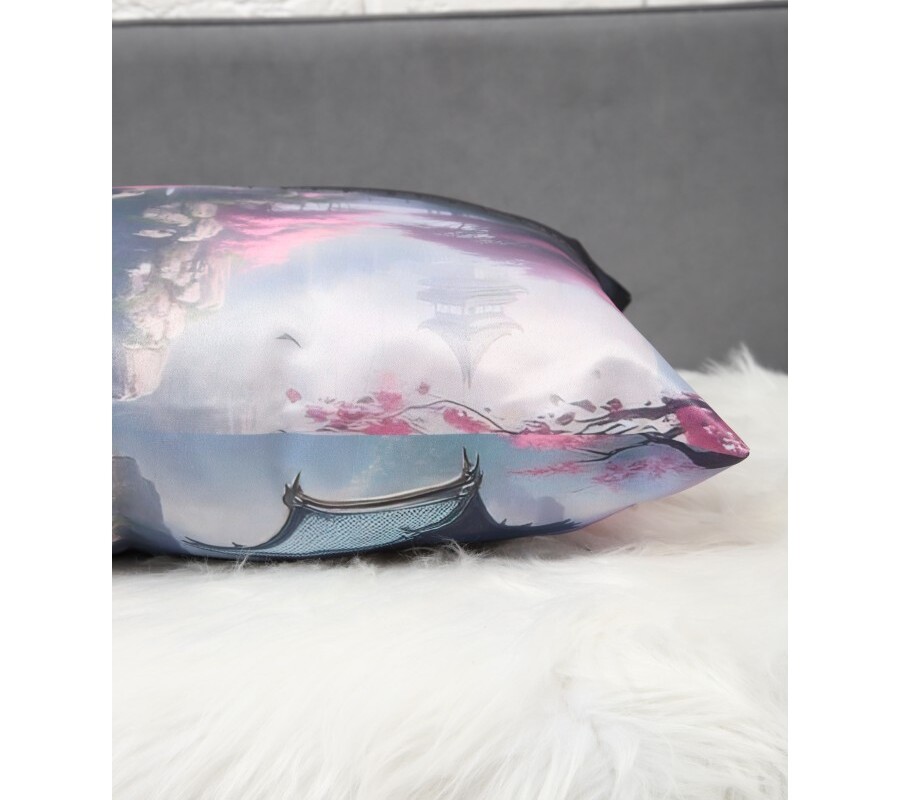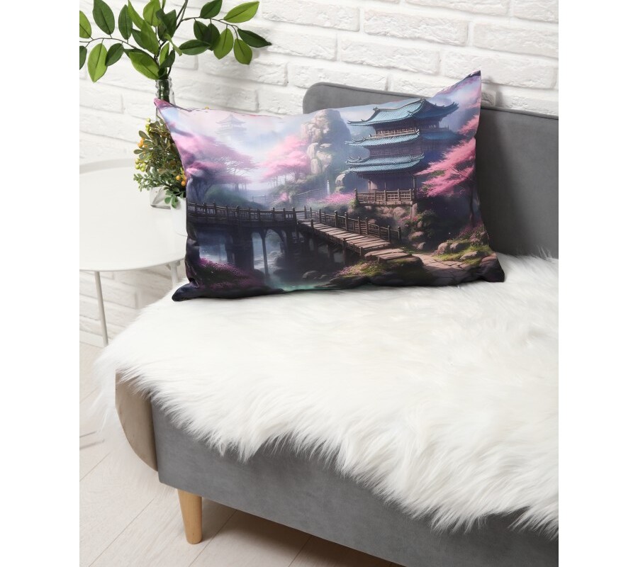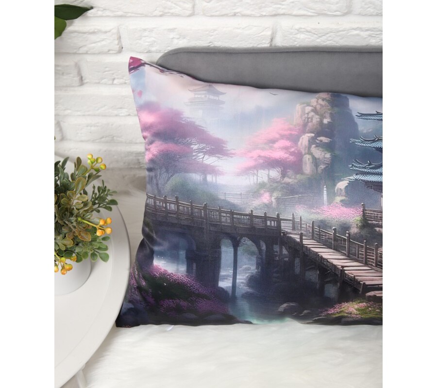 Декоративная интерьерная двусторонняя наволочка "Японский садик" на потайной молнии. Размер 50х70см. Подходит подушка размером 50х70 см, можно купить в комплекте.