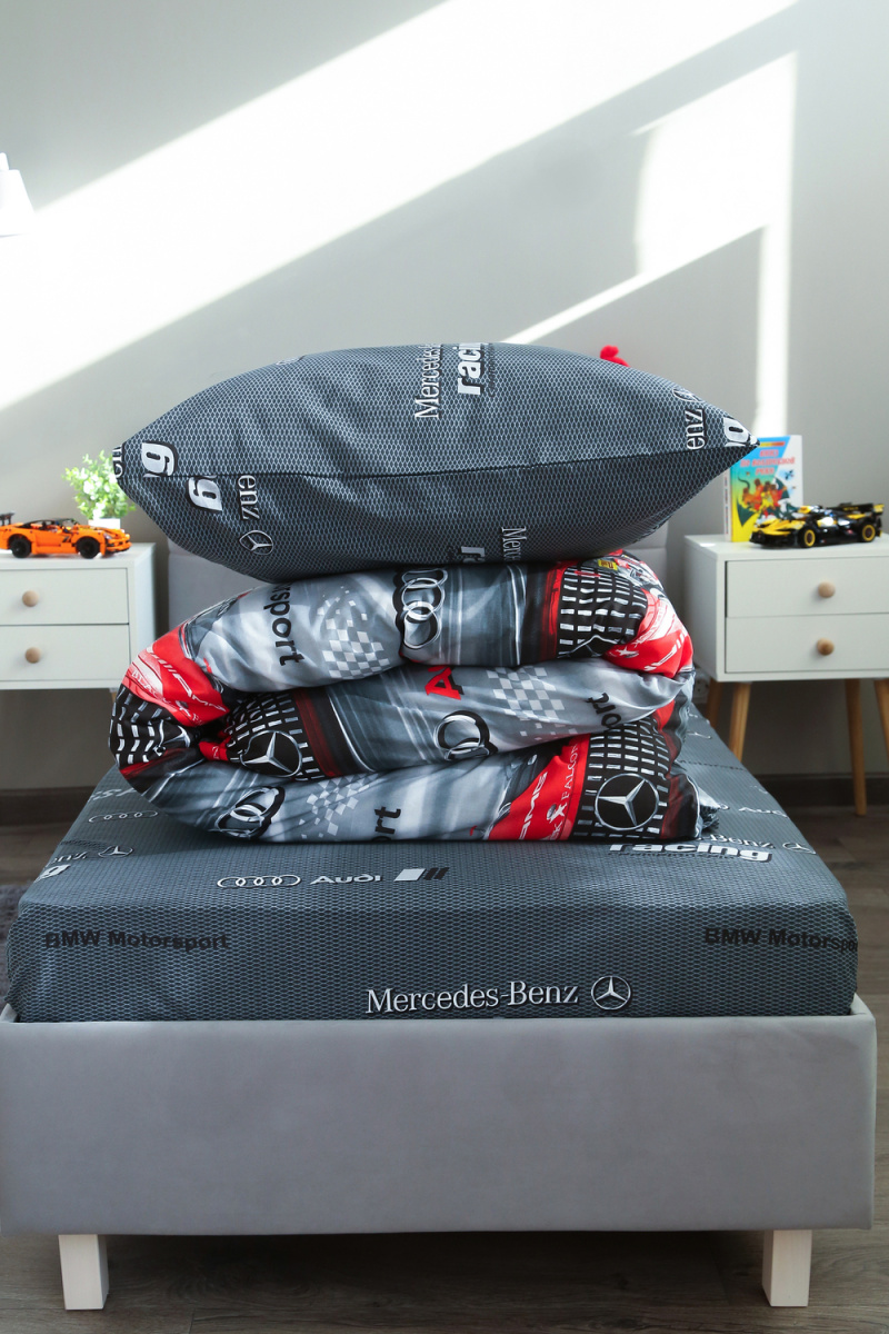 Дизайн с современным принтом автомобилей (Mercedes, Audi, BMW) добавляет интерьеру яркости и индивидуальности. Серебристый оттенок сочетается с классическими и современными стилями оформления.